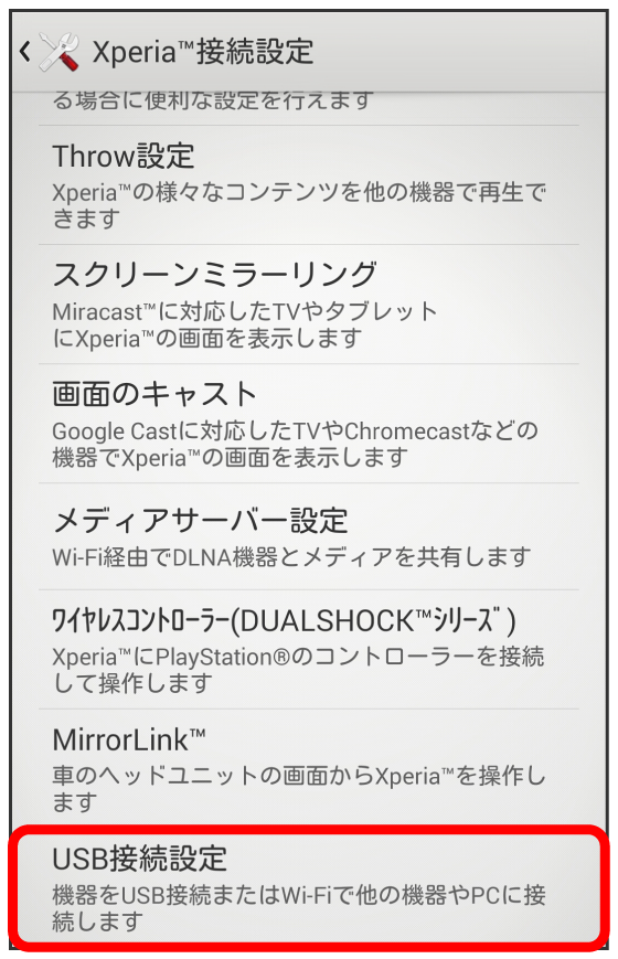 - をタップすると、USB接続モードに関する説明が表示されます。画面内の説明事項を確認してをタップします。