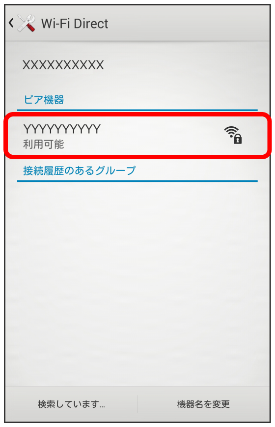 - 「ピア機器」欄に、近くにあるWi-Fi Direct機器が表示されます。