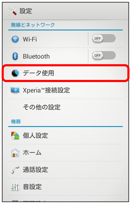 モバイルデータ通信の使用量を確認したり、使用を制限することができます。