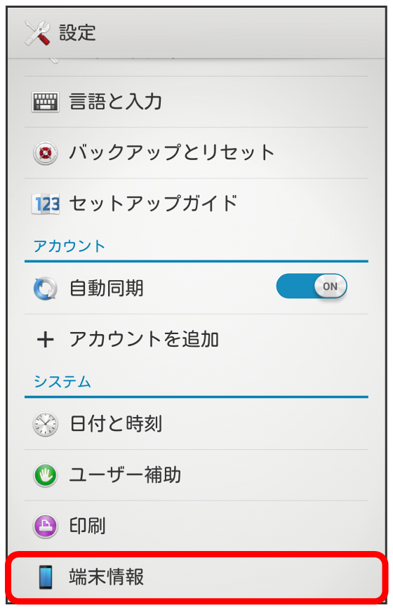 端末情報画面が表示されます。