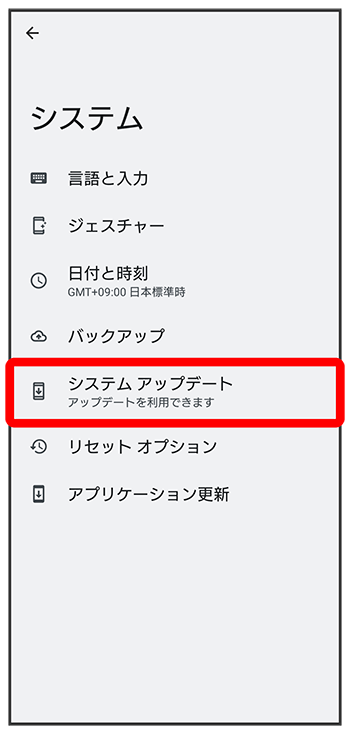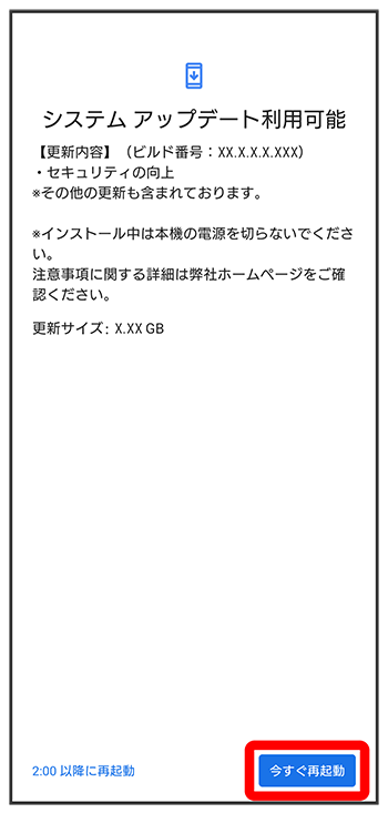 通知パネルに表示されるソフトウェア更新の通知をタップし、画面の指示に従って操作してください。