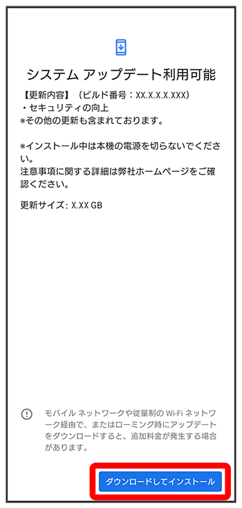- インストールが一時停止した場合は画面内容を確認し、インストールを続けるときはをタップしてください。