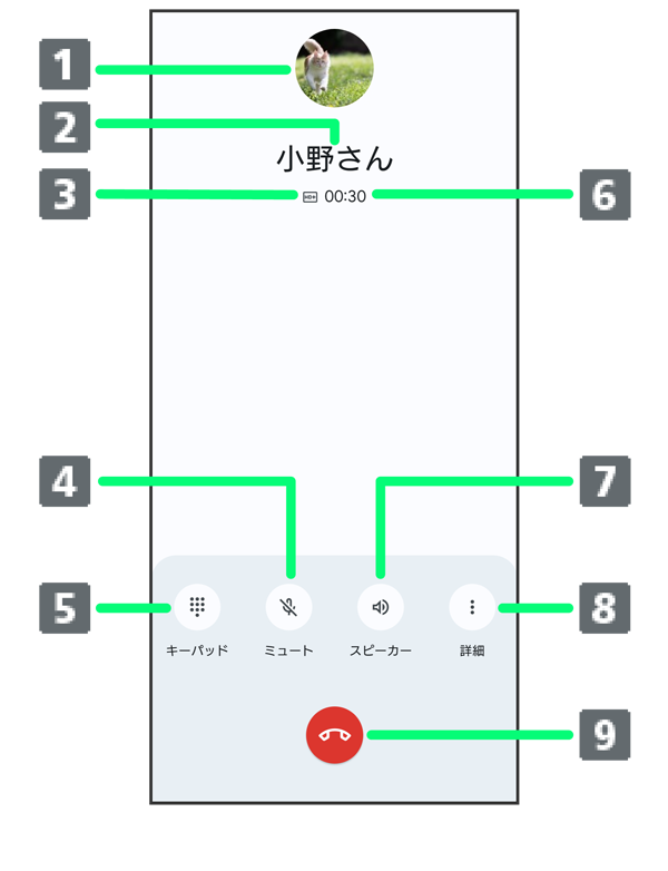 - 連絡先に登録している相手の名前/電話番号が表示されます。