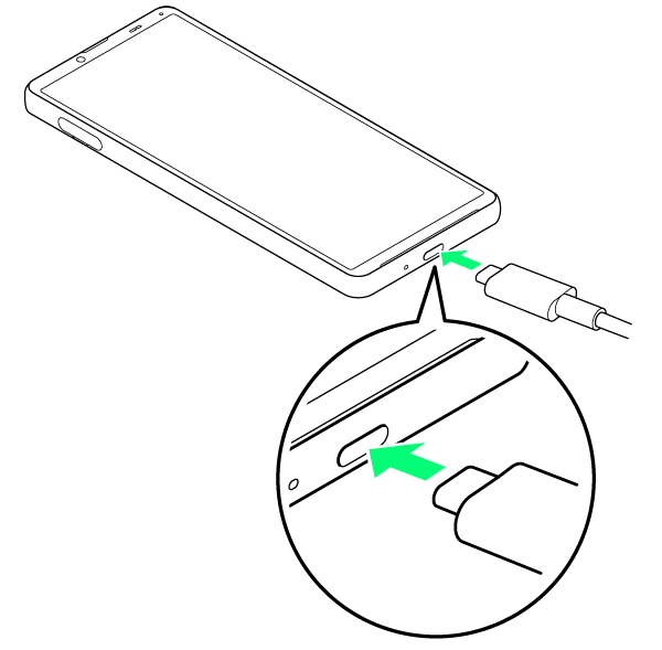 PC接続用USB Type-CケーブルのUSB Type-Cプラグを、本機のUSB Type-C接続端子に水平に差し込む