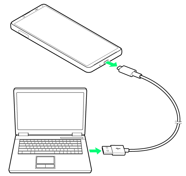 パソコンのUSB端子に、PC接続用USB Type-CケーブルのUSBプラグを差し込む