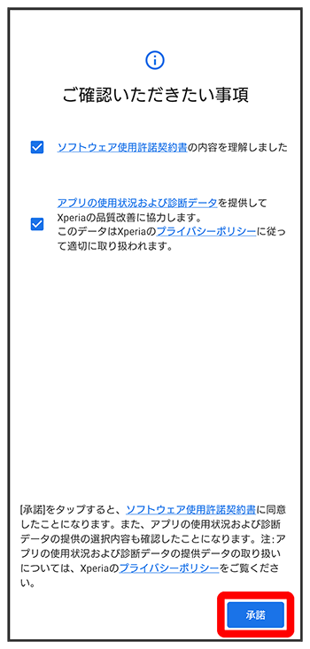 画面の指示に従って、データの引き継ぎを設定