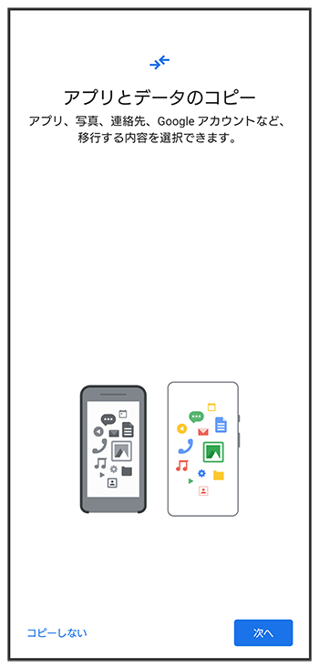 - Google アカウントを設定しているほかの端末からデータをコピーする場合は、をタップして、画面の指示に従って操作してください。