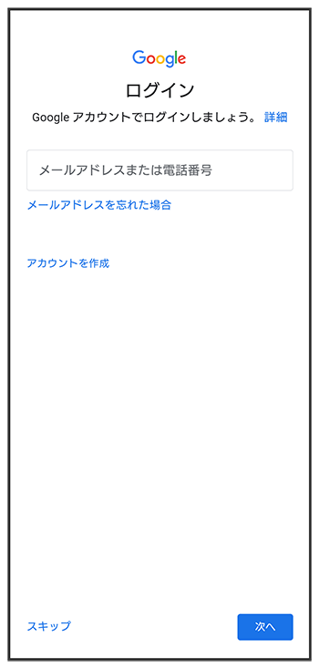 - Google アカウントを設定しないときは、をタップします。