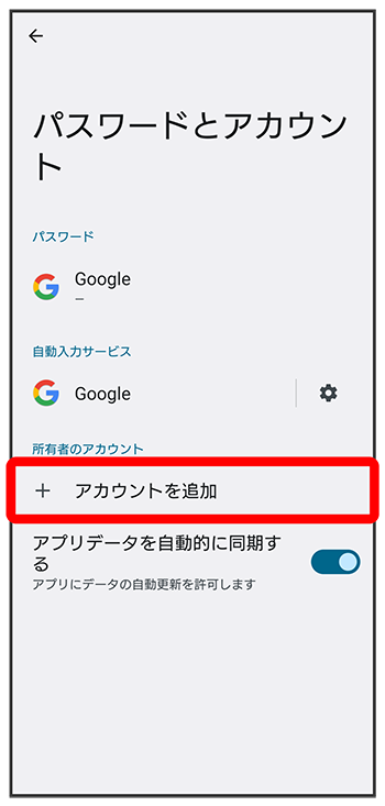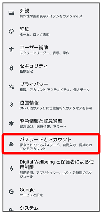 - 画面ロック解除方法を「パターン」/「ロックNo.」/「パスワード」に設定している場合は、画面ロック解除の入力画面が表示される場合があります。画面ロック解除方法を入力してください。