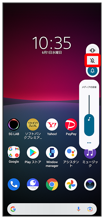 クイック設定パネルからマナーモード(バイブなし)に設定することができます。