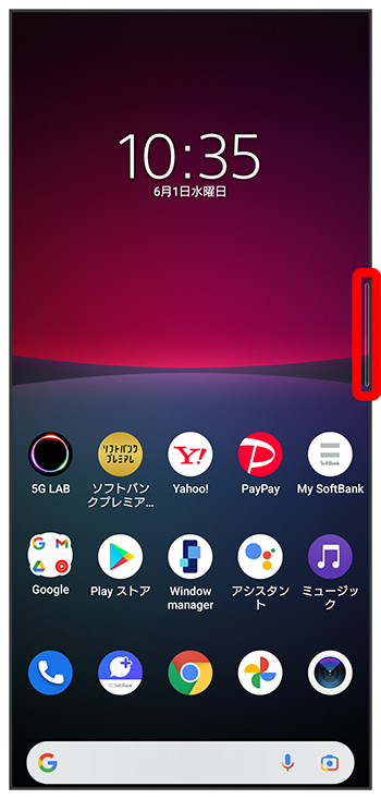 に変わります。元の形状に戻す場合は、画面の左端または右端に
