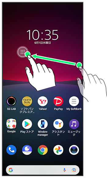 - 左端または右端以外に移動した場合は、サイドセンスバーが