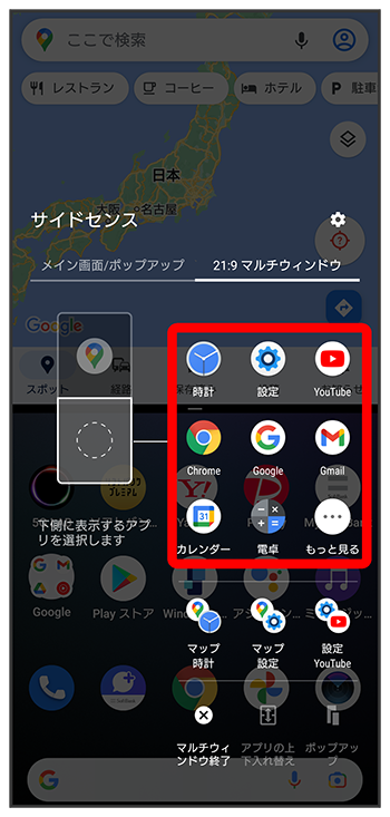 マルチウィンドウの下側に表示するアプリをタップ