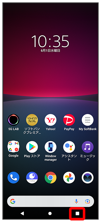 )を画面上端または下端(横画面表示の場合は左端または右端)までドラッグ