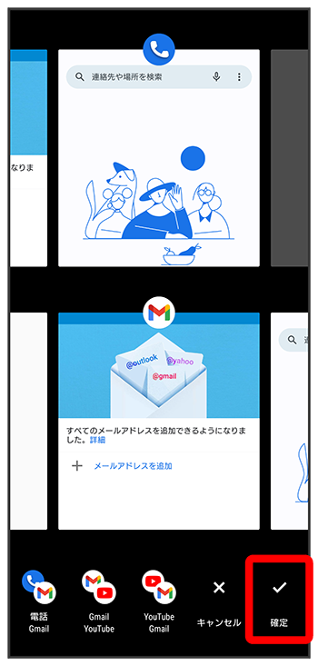 - をタップして、ランチャー画面で利用したいアプリを選択することもできます。