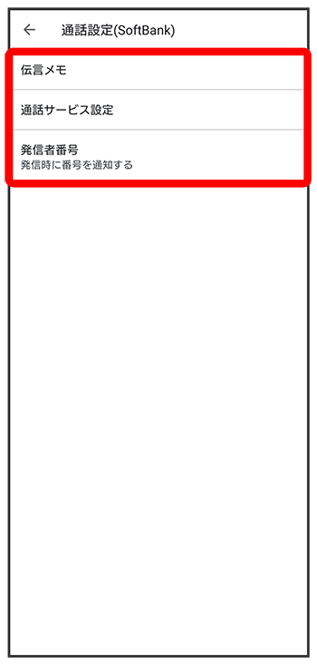 通話設定(SoftBank)画面が表示されます。