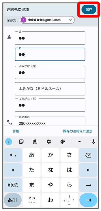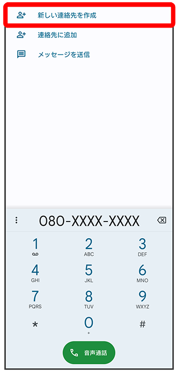 ダイヤルキーをタップして、登録したい電話番号を入力