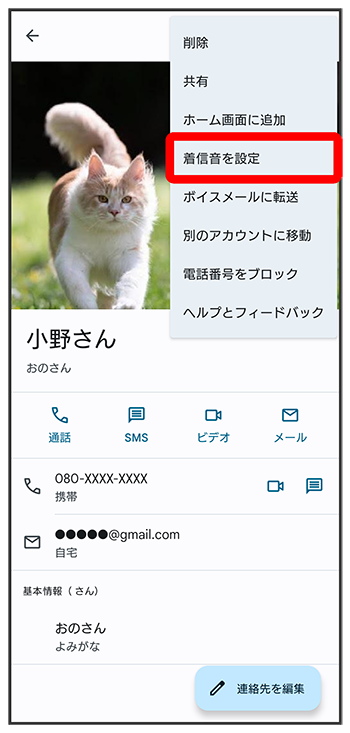連絡先ごとに着信音を設定する