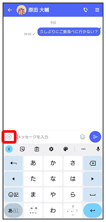 をタップすると画像/動画が添付されたメッセージが送信されます。