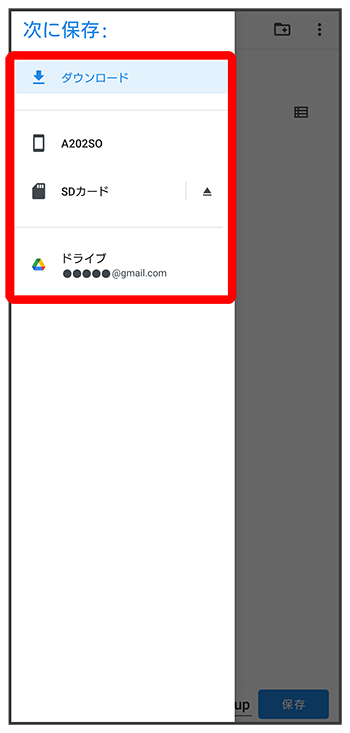 - 端末内へ保存したい場合は機種名/ダウンロードを選択します。