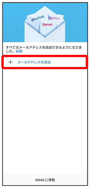 - あらかじめGoogle アカウントでログインしている場合は、をタップしてGmailを利用できます。をタップして、ほかのメールアドレスを追加することもできます。