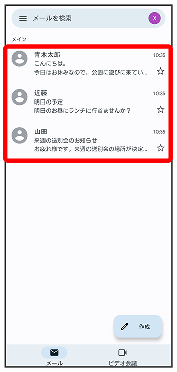 メール一覧画面が表示されます。