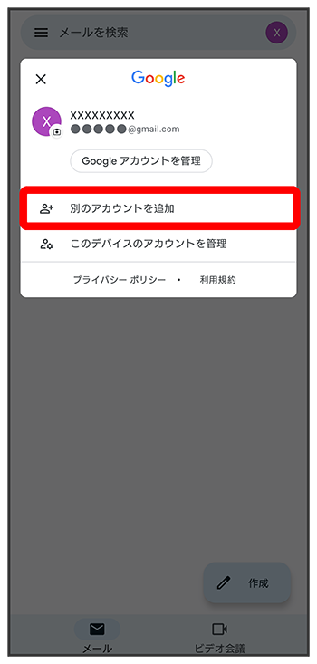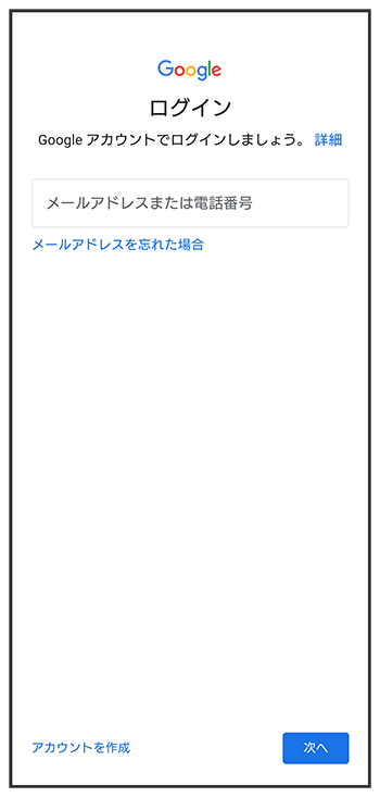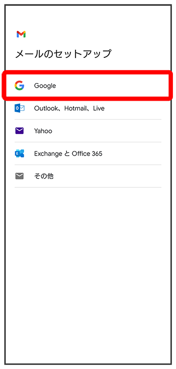 ここではGoogle のメールアカウントの追加を例に説明しています。
