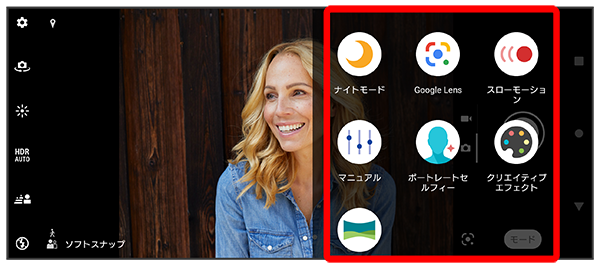 撮影モードの種類をタップ