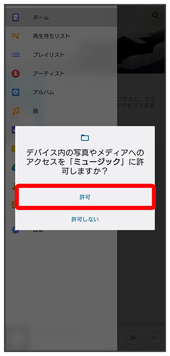 (ミュージック)をはじめて起動したときの操作を例に説明します。