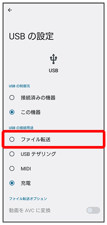USB接続モードを変更する