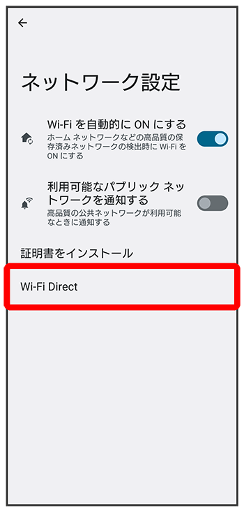 - 「ピアデバイス」欄に、近くにあるWi-Fi Direct機器が表示されます。