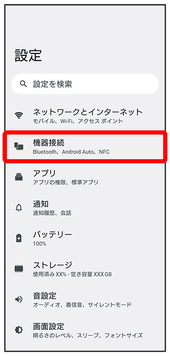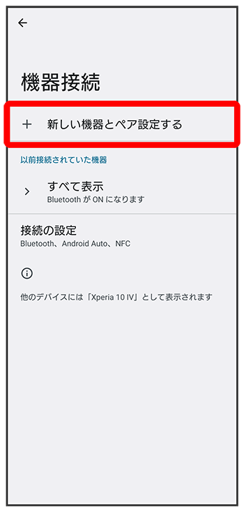- 機器接続画面の上部に、ペア設定中のBluetooth機器が表示されます。
