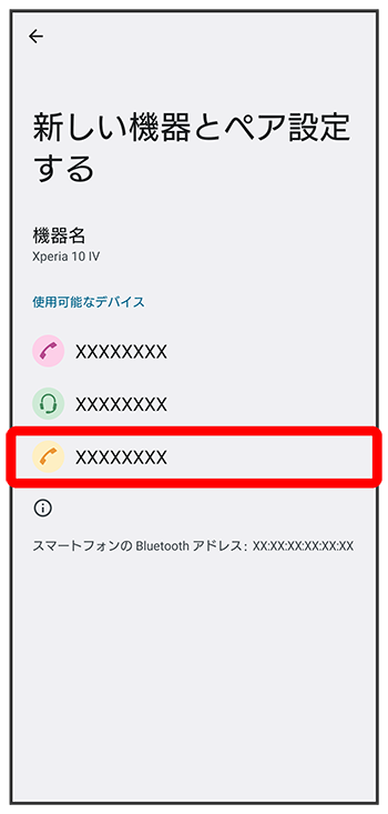 「使用可能なデバイス」欄に、近くにあるBluetooth機器が表示されます。