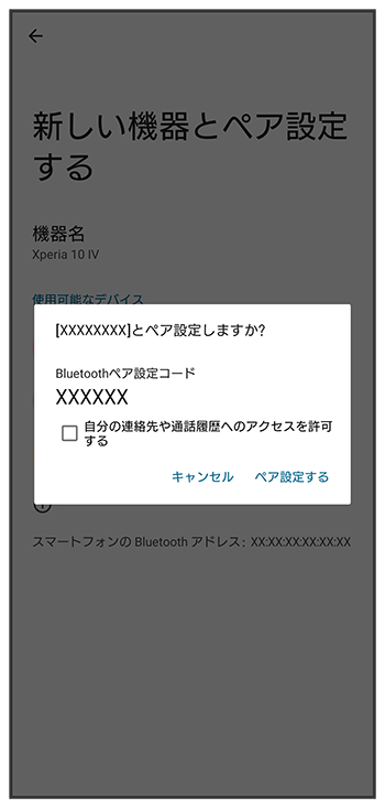 機器接続画面でペア設定中の機器をタップ/ペア設定中の機器の