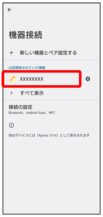 「以前接続されていた機器」欄の接続したい機器をタップ