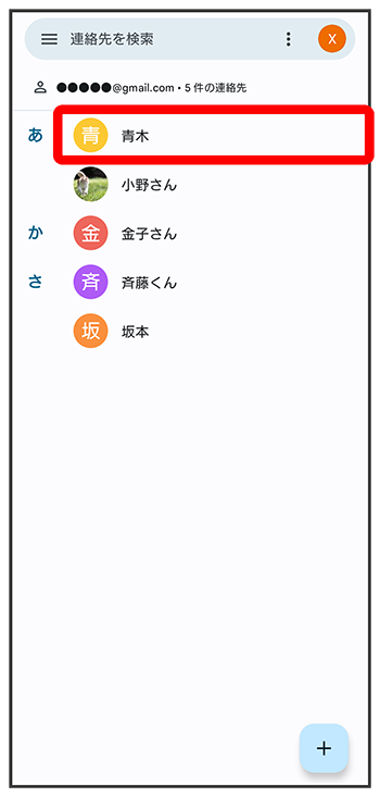 表示)続けてほかの対象の連絡先をタップと操作します。