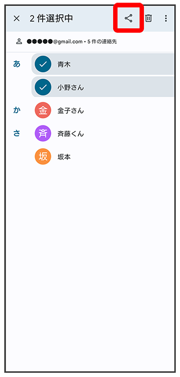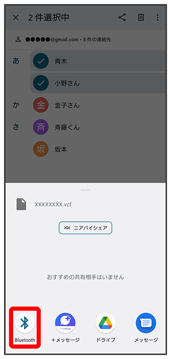 - 複数の連絡先を送信する場合は、対象の連絡先をロングタッチ(