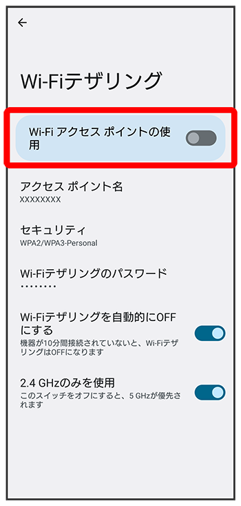 Wi-Fiテザリングの設定をする