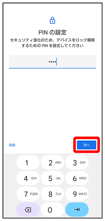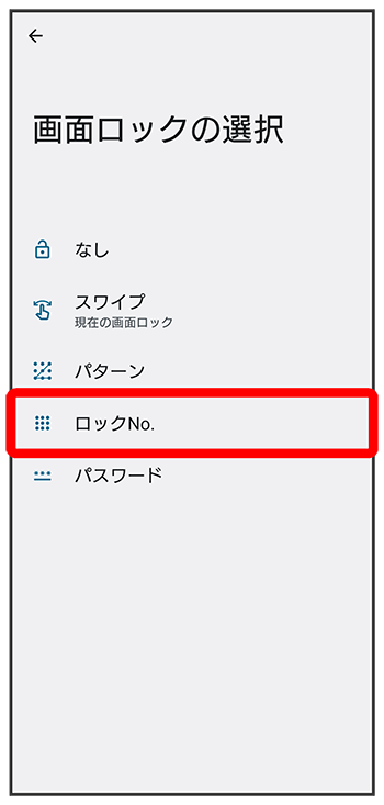 ロックNo.で画面ロックを解除するように設定する