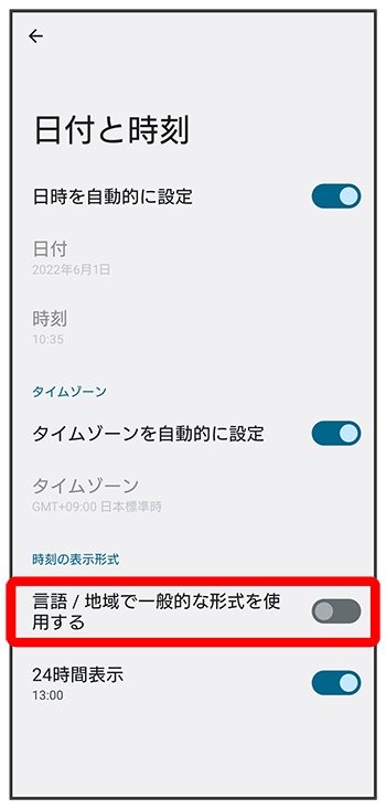 24時間表示を自動設定する