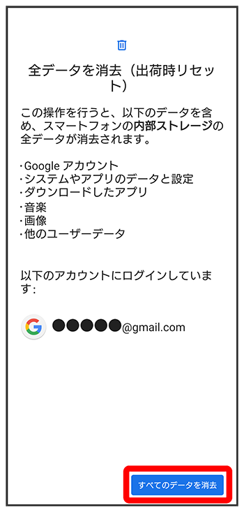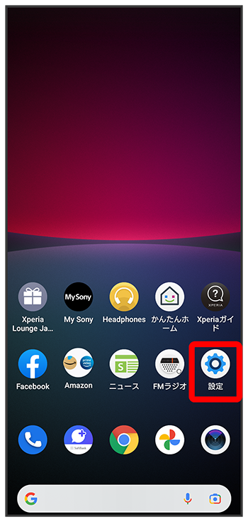 - 画面ロック解除方法を「パターン」/「ロックNo.」/「パスワード」に設定している場合は、画面ロック解除の入力画面が表示されます。画面ロック解除方法を入力してください。