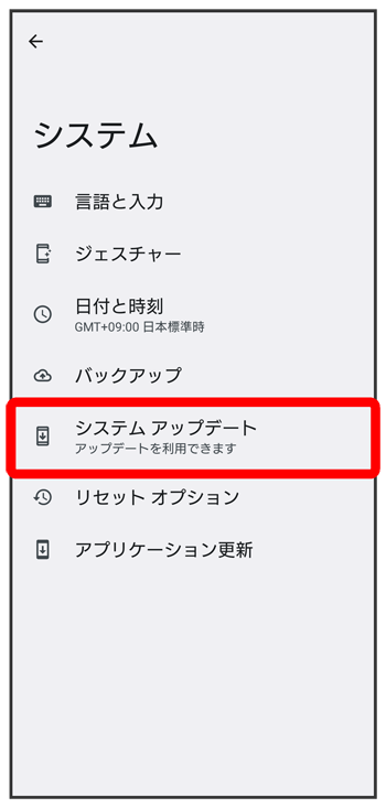 通知パネルに表示されるソフトウェア更新の通知をタップし、画面の指示に従って操作してください。