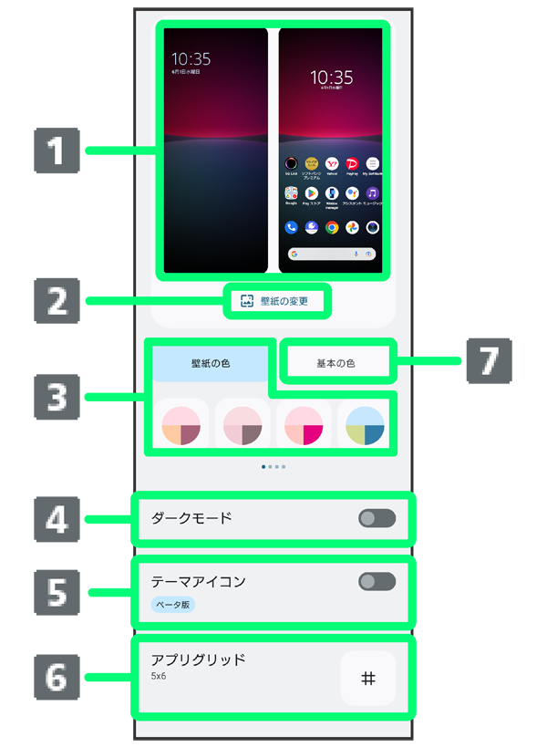 ホーム画面のアイコンがない場所をロングタッチと操作して、壁紙や本機のスタイルを設定できます。「壁紙を変更する」の手順が一部変更されます。