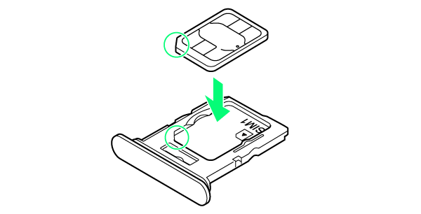 SIMカードのIC(金属)部分を上にしてトレイにはめ込む
