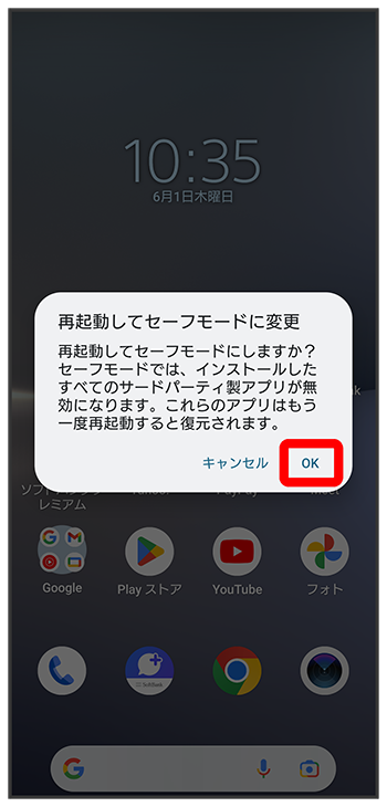 - セーフモードで電源を入れると、画面左下に「セーフモード」と表示されます。
