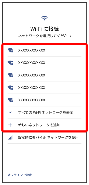 - SIMカードのご利用中にWi-Fiの設定を省略するときは、/をタップします。以降は、画面の指示に従って操作してください。