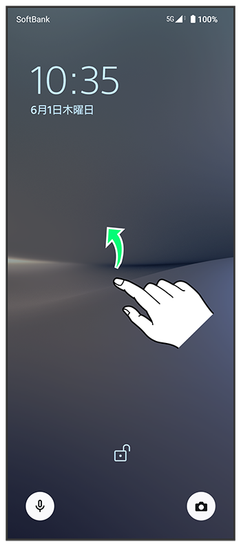 - 指紋を登録済みの場合は、登録した指を指紋センサーに触れることで、画面ロックを解除できます。指紋の登録について詳しくは、「指紋を登録する」を参照してください。