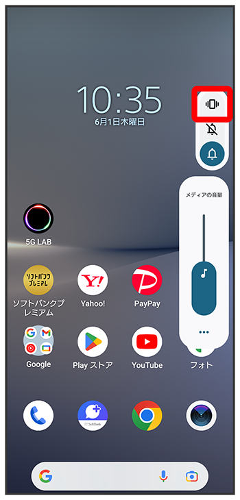 クイック設定パネルからマナーモード(バイブあり)に設定することができます。