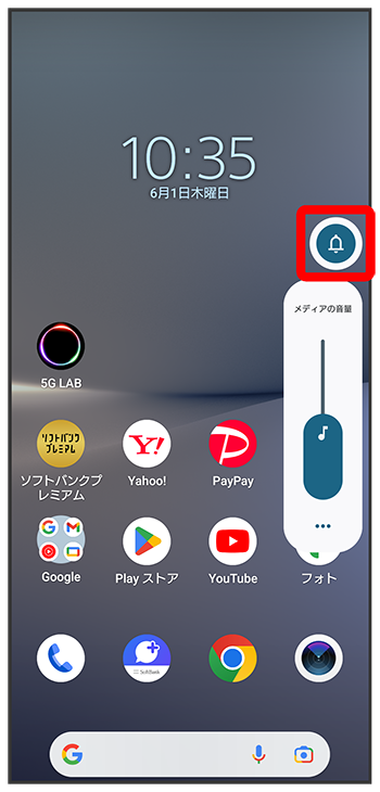 クイック設定パネルからマナーモード(バイブなし)に設定することができます。