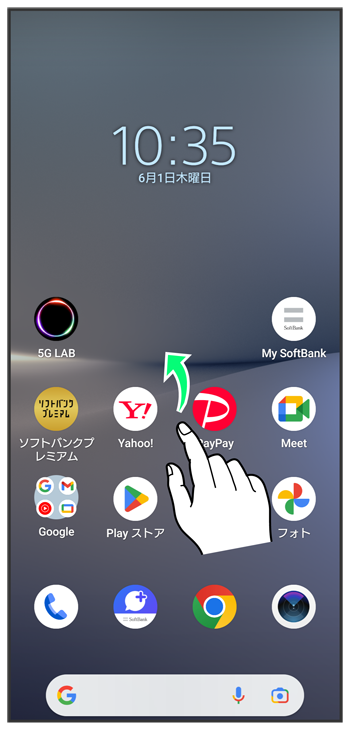 ホーム画面で画面を上にフリック